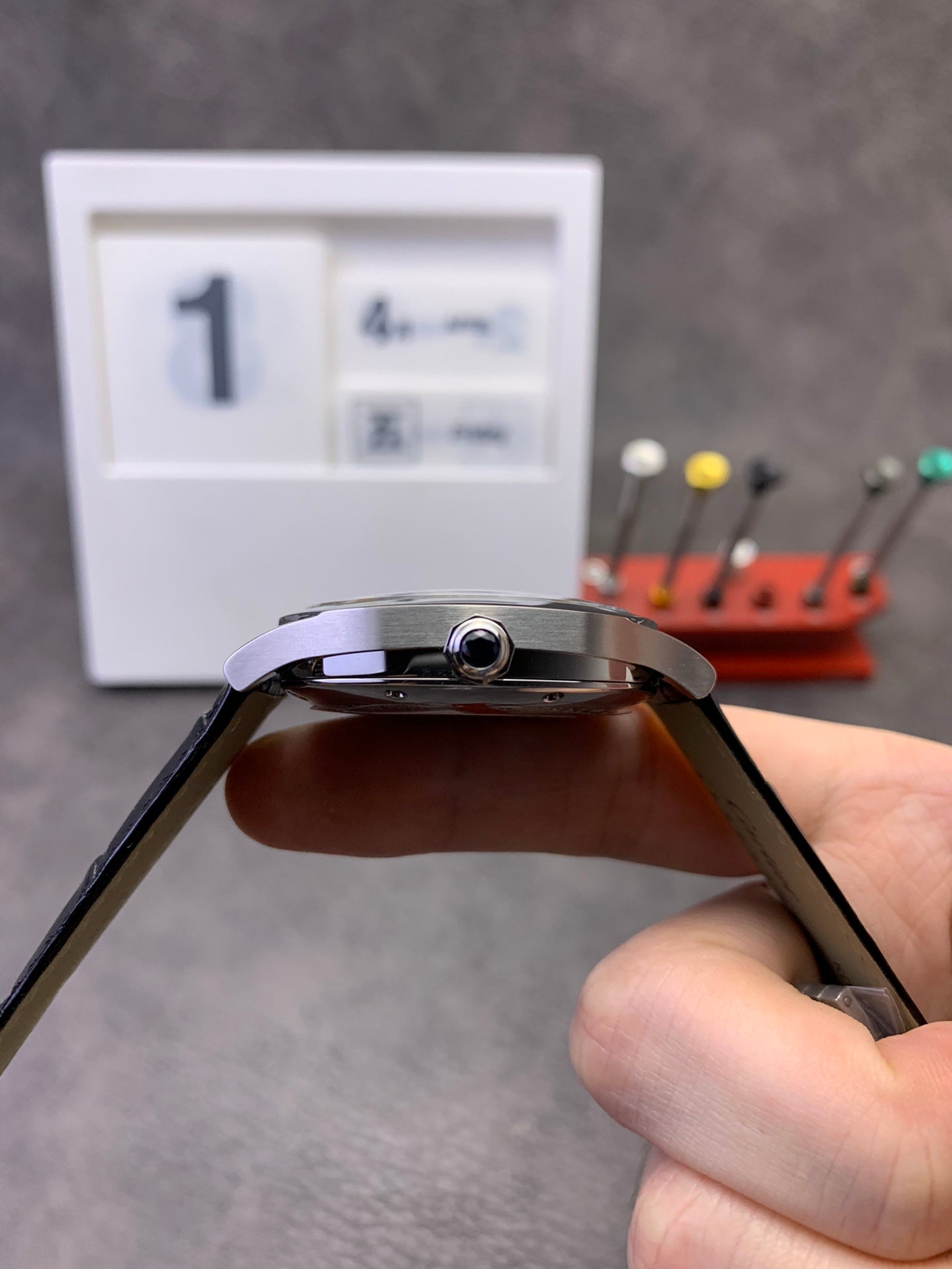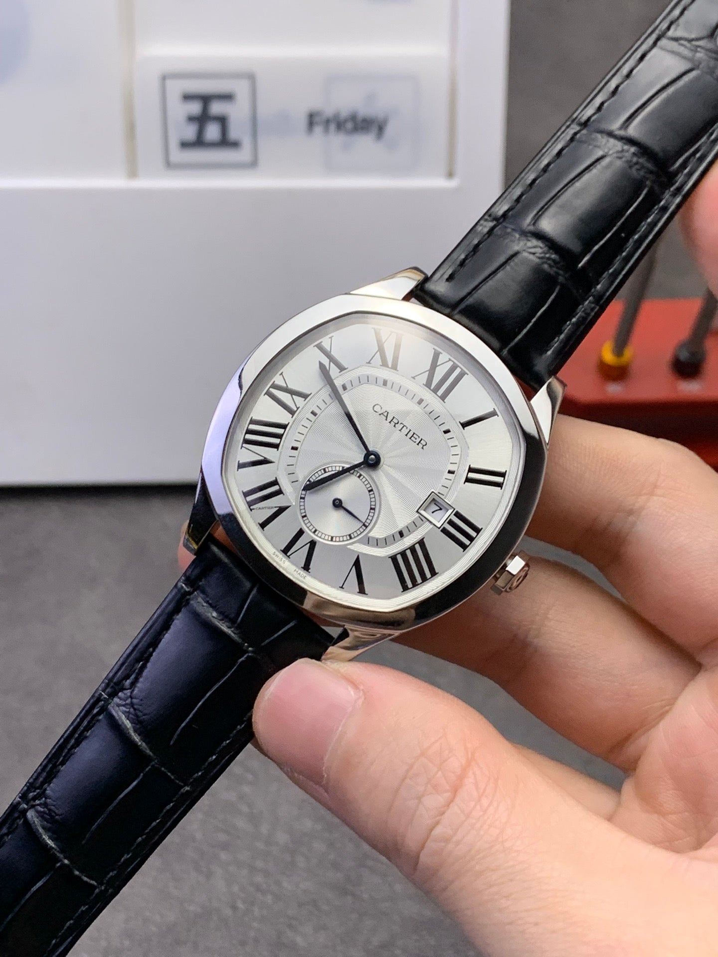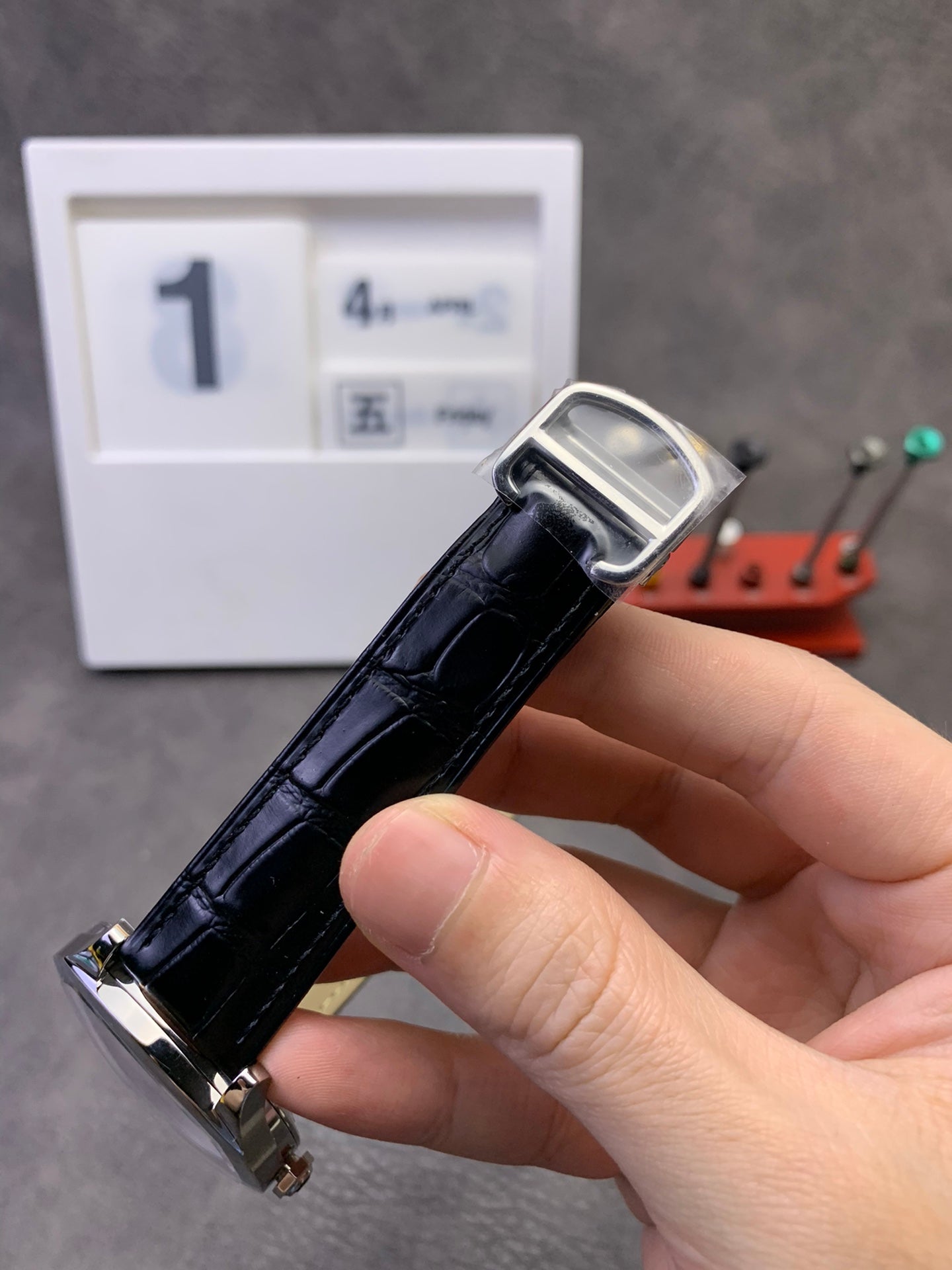 Comes with original box, booklets, and warranty. Bold round case, grid protector over sapphire crystal, silver dial, date window.
